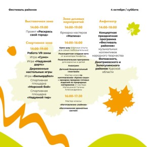 В субботу будут организованы спортивные активности, игры и мастер-классы, которые позволят проявить свои таланты и зарядиться позитивной энергией!Вечером на сцене амфитеатра выступят артисты из Дмитриевского, Фатежского и Золотухинского районов — они...