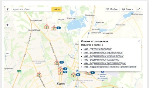 На сайте инспекции Гостехнадзора доступна интерактивная карта Курской области, где специальными знаками отмечены зарегистрированные и прошедшие техническое освидетельствование аттракционы.