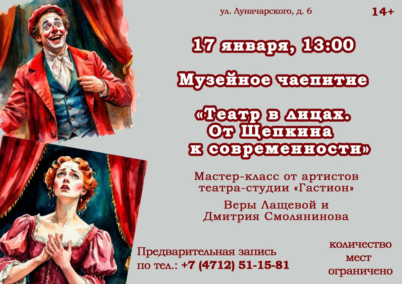 17 января в областном краеведческом музее пройдет музейное чаепитие с экскурсией «Театр в лицах. От Щепкина к современности». Начало в 13:00.