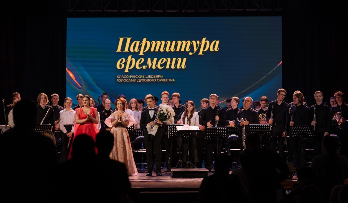 В Областном дворце культуры имени Владимира Винокура прошёл большой концерт духового оркестра Курского музыкального колледжа имени Георгия Свиридова. Коллектив представил новую программу под названием «Партитура времени: классические шедевры голосами духового оркестра». Мероприятие состоялось при поддержке федерального проекта «Пушкинская карта» национального проекта «Семья».