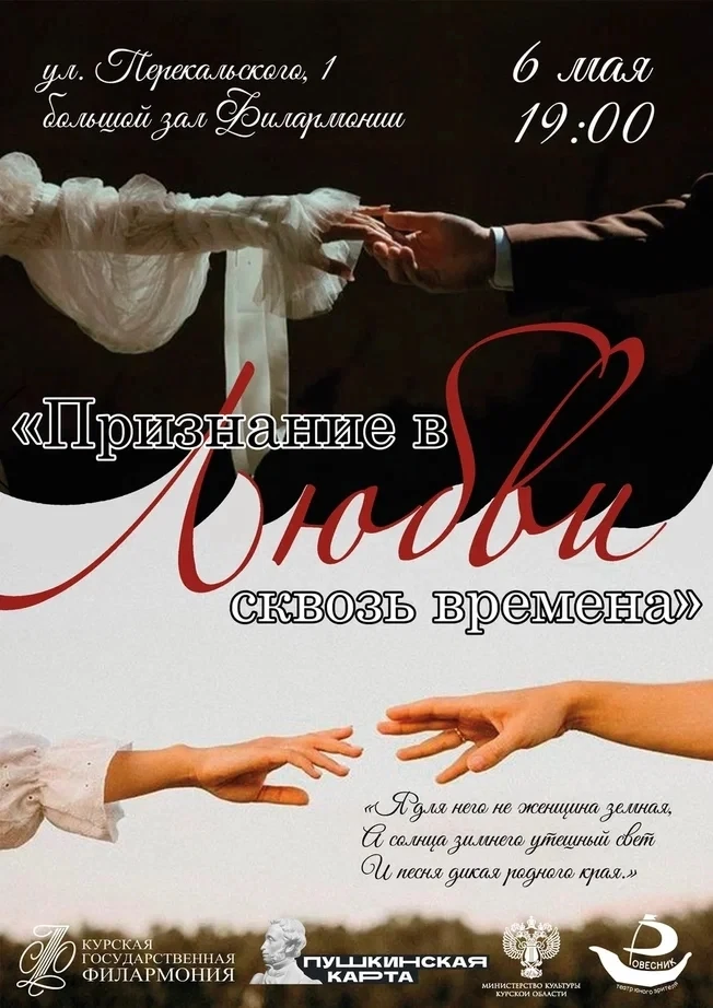 6 мая в 19:00 на сцене большого зала Курской государственной филармонии состоится благотворительный концерт «Признание в любви сквозь времена».