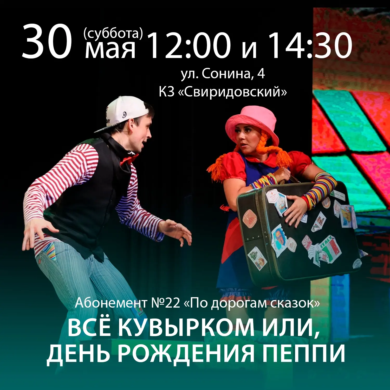 30 мая в 12:00 и в 14:30 в Концертном зале «Свиридовский» Курской государственной филармонии состоится показ детского спектакля «Все кувырком, или День рождения Пеппи» по мотивам сказки шведской писательницы Астрид Линдгрен.