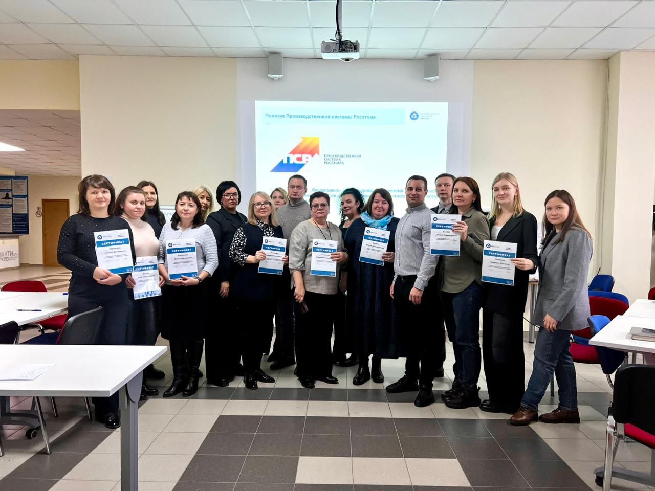 В ходе тренинга участники изучили основы Производственной системы Росатома (ПСР), виды потерь, принципы организации рабочего пространства по методике «5С» и метод «5 Почему».