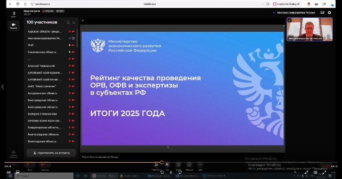 Итоги рейтинга за 2025 год были представлены на совещании под руководством директора Департамента регуляторной политики и оценки регулирующего воздействия Минэкономразвития России Андрея Викторовича Старикова.