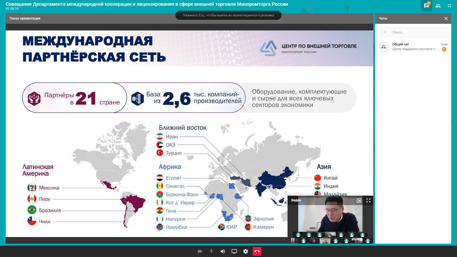 Минпромторг России провел совещание с ответственными по развитию экспорта в регионах России в рамках национального проекта «Международная кооперация и экспорт».