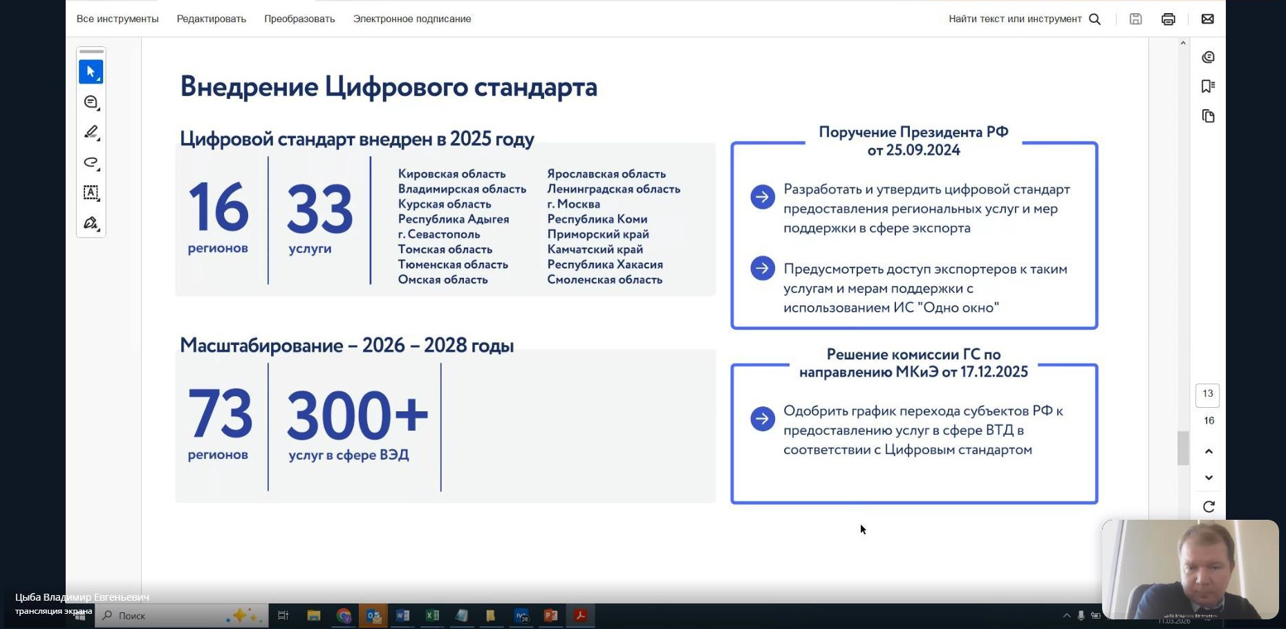 Курская область в качестве пилотного региона с 2025 года участвует в активной трансформации системы поддержки внешнеэкономической деятельности через внедрение Цифрового стандарта предоставления региональных услуг и мер поддержки в сфере экспорта.