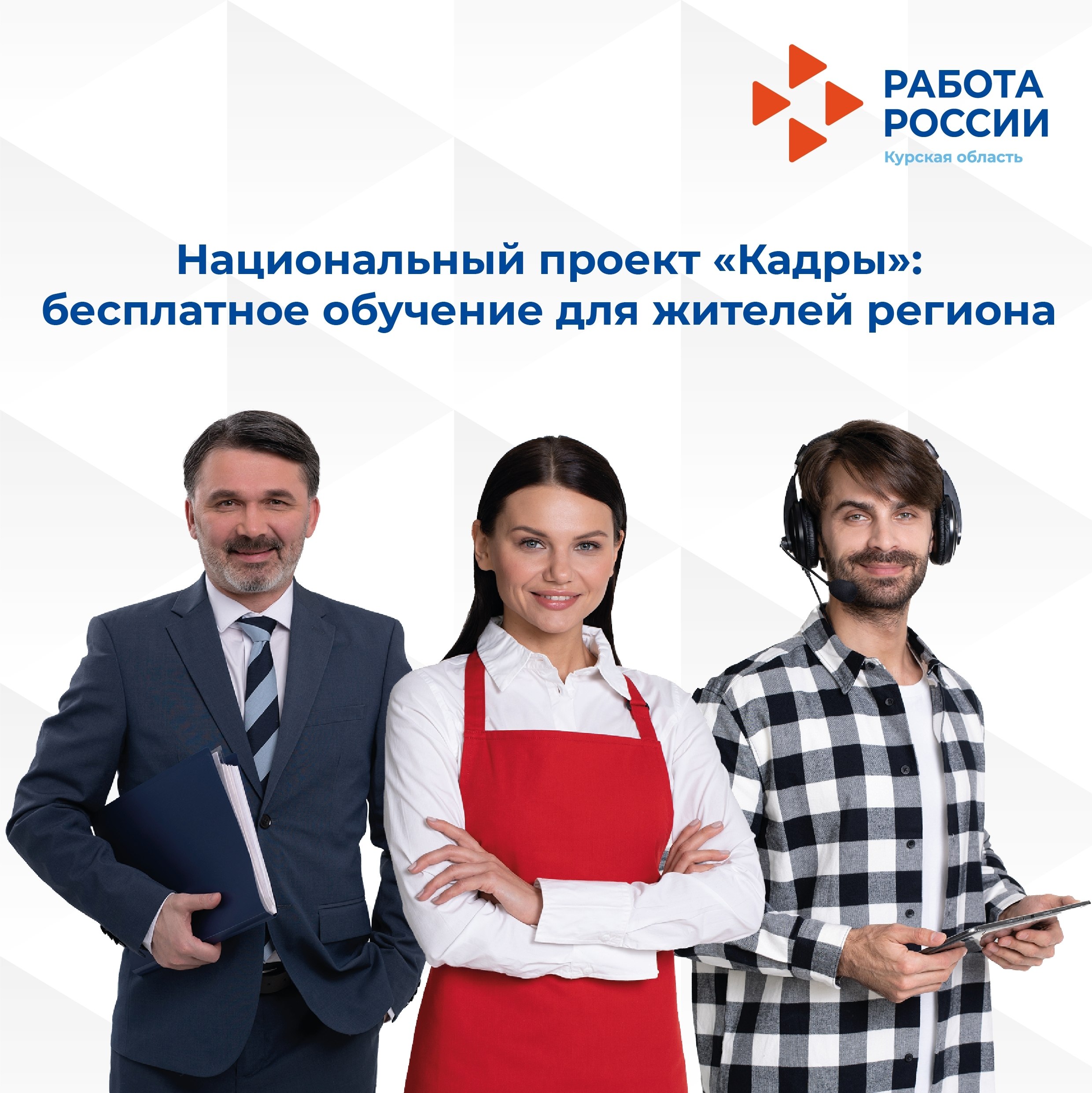 Хотите сменить сферу деятельности, получить востребованную профессию или повысить квалификацию? Воспользуйтесь возможностями нацпроекта «Кадры» – пройдите бесплатное обучение по востребованным направлениям.