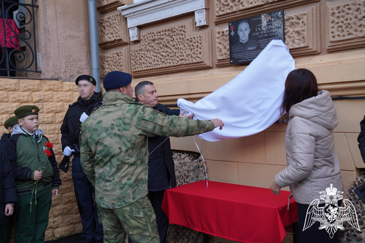 В Курске состоялась торжественная церемония открытия мемориальной доски сотруднику ОМОН «Финист» Управления Росгвардии по Курской области старшему прапорщику полиции Олегу Галушкину, погибшему при выполнении служебно-боевой задачи в приграничном районе Курской области. Памятный знак установлен на фасаде Курского монтажного техникума имени А.В. Лапшина, где он учился.