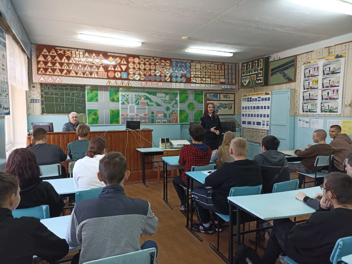 Встреча с сотрудниками Госавтоинспекции прошла в Щигровском филиале ОБПОУ «Советский социально-аграрный техникум им. В.М. Клыкова».