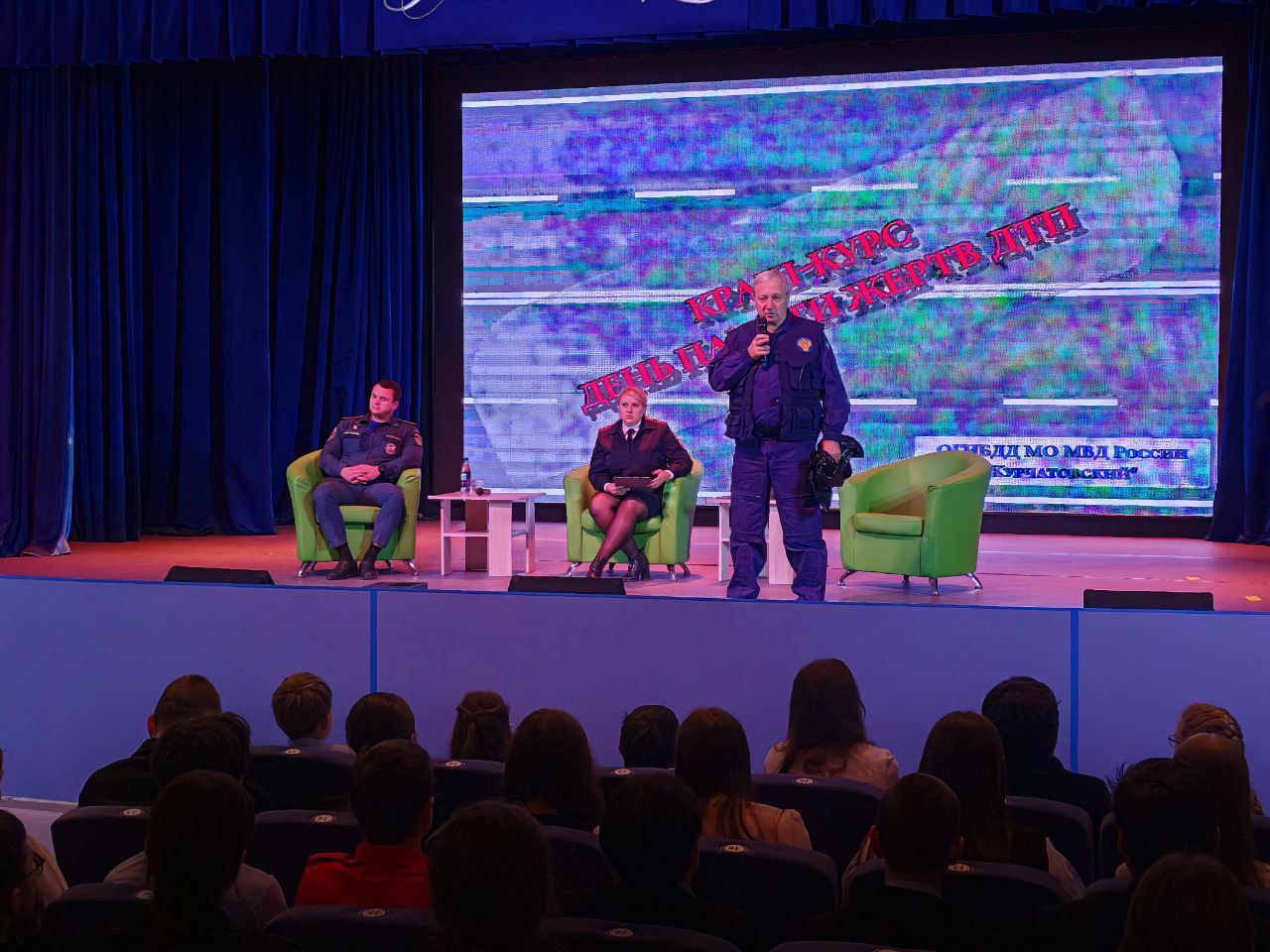 Курчатовская Госавтоинспекция при поддержке членов общественного совета при МО МВД России «Курчатовский» в молодёжном центре «Комсомолец» организовала мероприятие, приуроченное ко Дню памяти жертв ДТП. Для учащихся старших классов прошёл «Краш-курс». В мероприятии приняли участие представители ведомств, которые первыми прибывают на место ДТП и оказывают помощь пострадавшим.