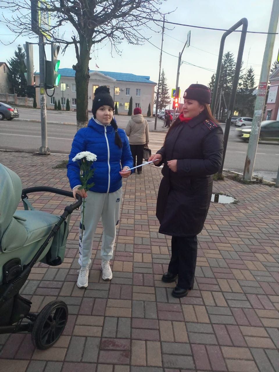 Сотрудники отделения Госавтоинспекции ОМВД России по Обоянскому району провели пропагандистскую акцию, направленную на снижение детского дорожно-транспортного травматизма, поздравив молодых мам с наступающим праздником.