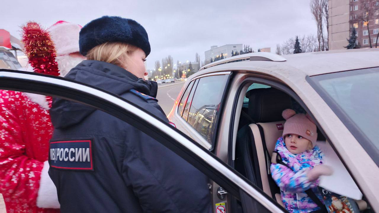 Полицейский Дед Мороз пожелал водителям безаварийных дорог, а малышам, которые были пристёгнуты в автокреслах, вручил сладкие подарки. Не остались без внимания и пешеходы — им вручили светоотражающие элементы и тематические буклеты.