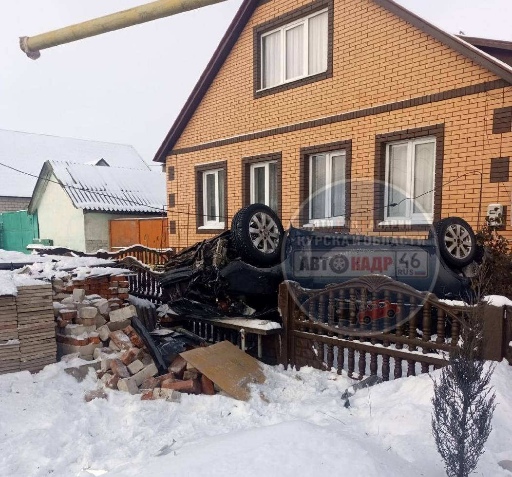21-летняя девушка-водитель не справилась с управлением, съехала с трассы во двор частного дома и чуть не влетела в стену здания.