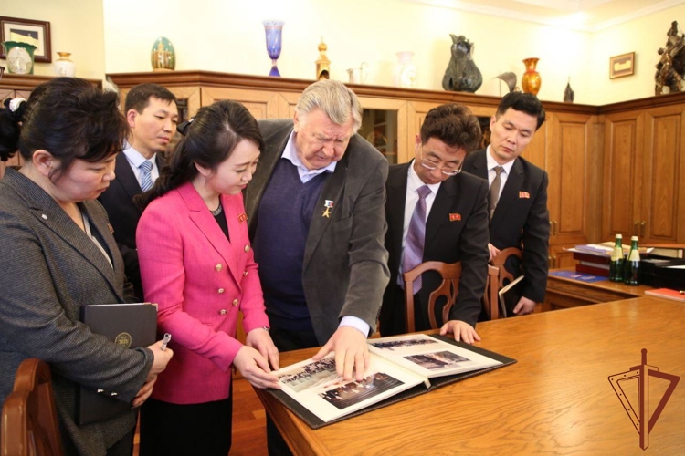 В рамках встречи с зарубежными гостями художественный руководитель и главный дирижёр ансамбля, народный артист России, профессор Московской консерватории, Герой Труда России генерал-майор внутренней службы Виктор Елисеев высоко оценил северокорейскую культуру, акцентировав особое внимание на богатых музыкальных традициях КНДР. Маэстро отметил, что репертуар творческого коллектива Росгвардии насчитывает порядка 15 северокорейских композиций различной тематики, включая патриотическую.