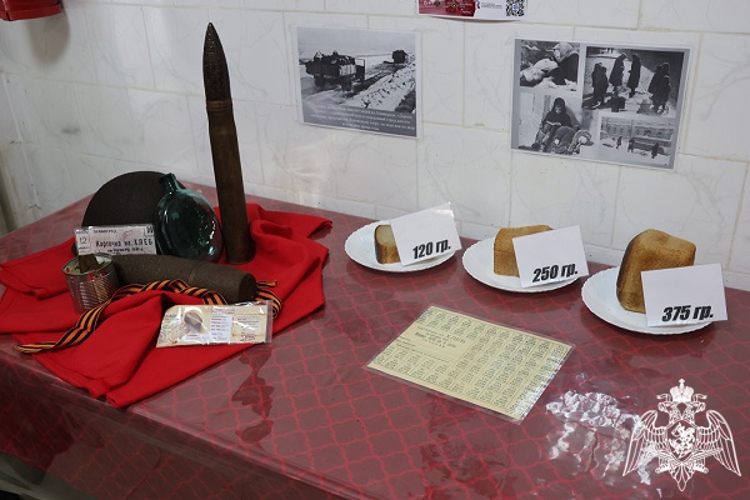 Кроме того, памятная дата была отмечена и внутри ведомства. С личным составом управления проведена беседа по теме «Будем помнить тебя, Ленинград», в ходе которой военнослужащим и сотрудникам напомнили о трагических и героических событиях тех лет. Также для личного состава была проведена акция «Блокадный хлеб»: росгвардейцам рассказали о суточной норме хлеба в самые тяжелые дни блокады и показали её наглядный образец в 125 граммов. В рамках мероприятия для личного состава был организован просмотр тематического документального фильма, а в музее управления "Портал в историю" развернута выставка «Блокады прорвано кольцо».