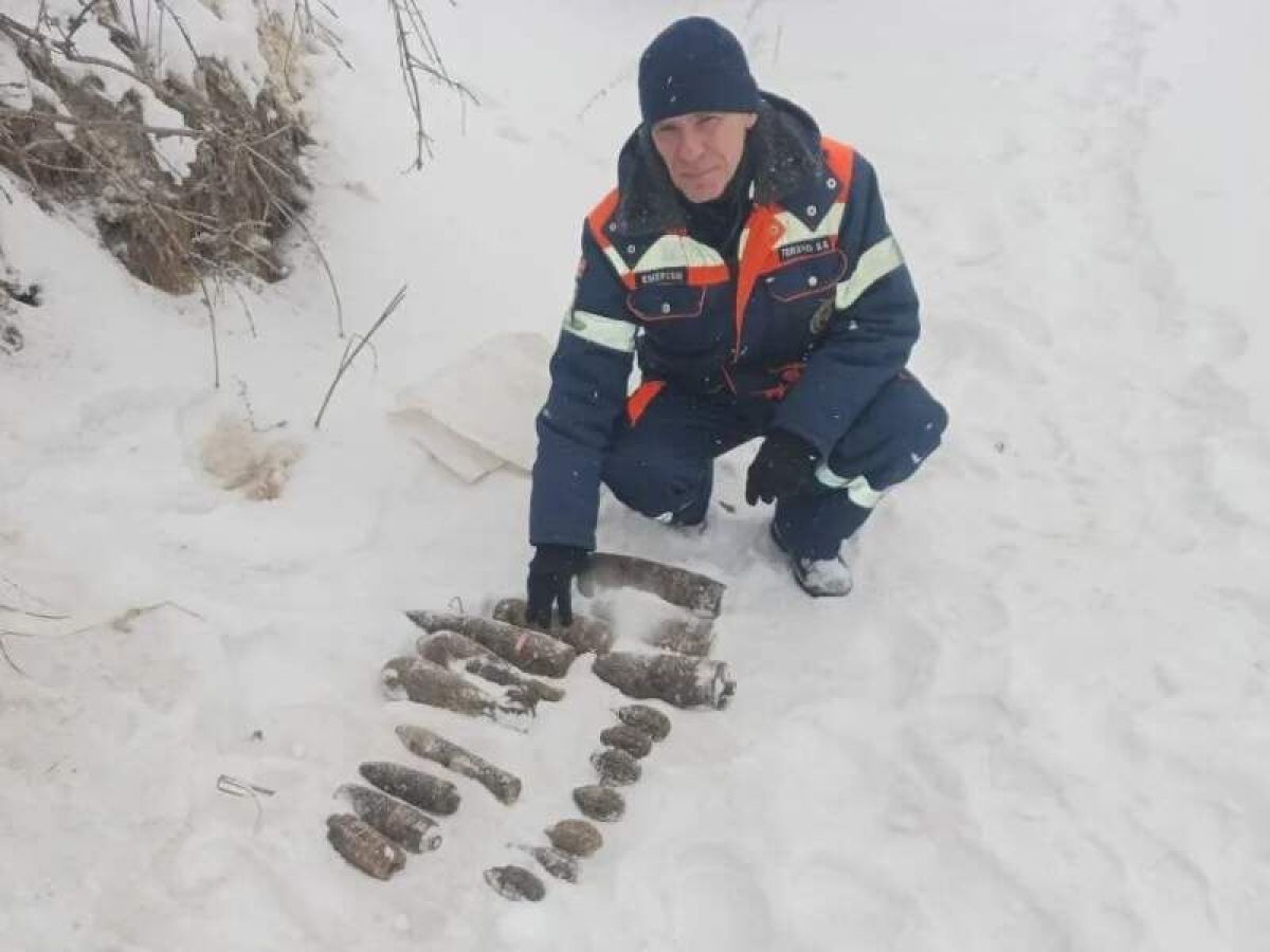На место незамедлительно выехали специалисты группы спецработ Аварийно-спасательной службы и сотрудники полиции. В ходе осмотра территории были изъяты 8 артиллерийских снарядов, 7 гранат Ф-1, две миномётные мины и одна противопехотная мина.