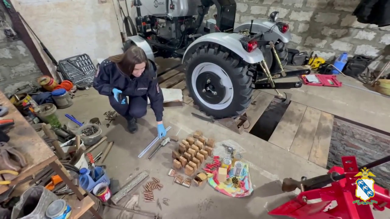 Полицейские провели обыск гаража подозреваемого и обнаружили десятки патронов, в том числе к оружию времён Великой Отечественной войны, сигнальный пистолет-ракетницу, револьвер, банки с порохом. Также найдено одноствольное ружьё, к которому мужчина самостоятельно прикрепил ствол с прикладом и окрасил его — планировал установить и затвор, но не успел.