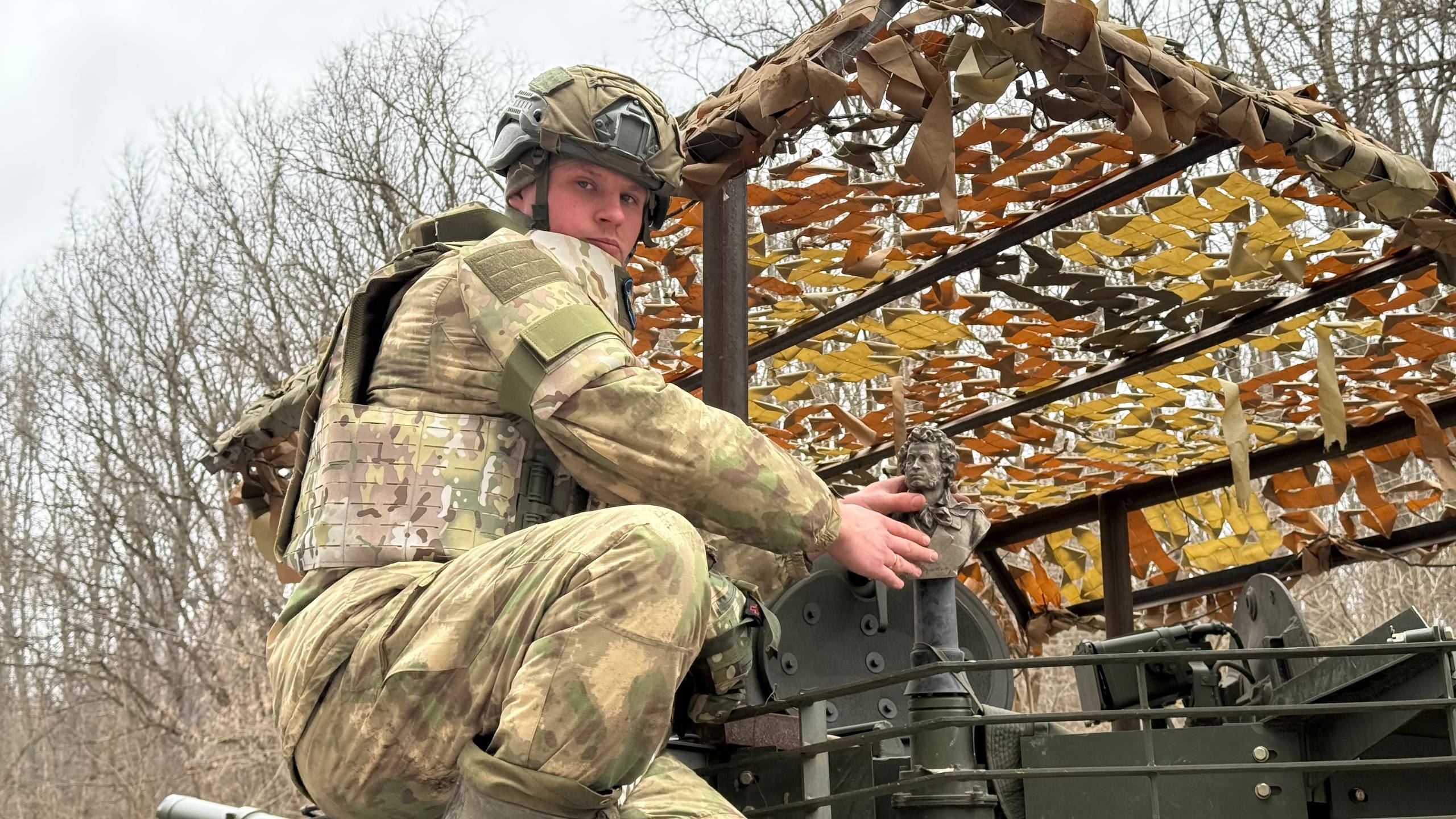 - Я его еще в Бахмуте подобрал, - застенчиво поясняет механик-водитель уссурийской 83-й гвардейской десантно-штурмовой бригады с позывным «Большой». — Дом разбитый, смотрю — валяется. Подобрал и привесил на борт. Теперь с нами катается.