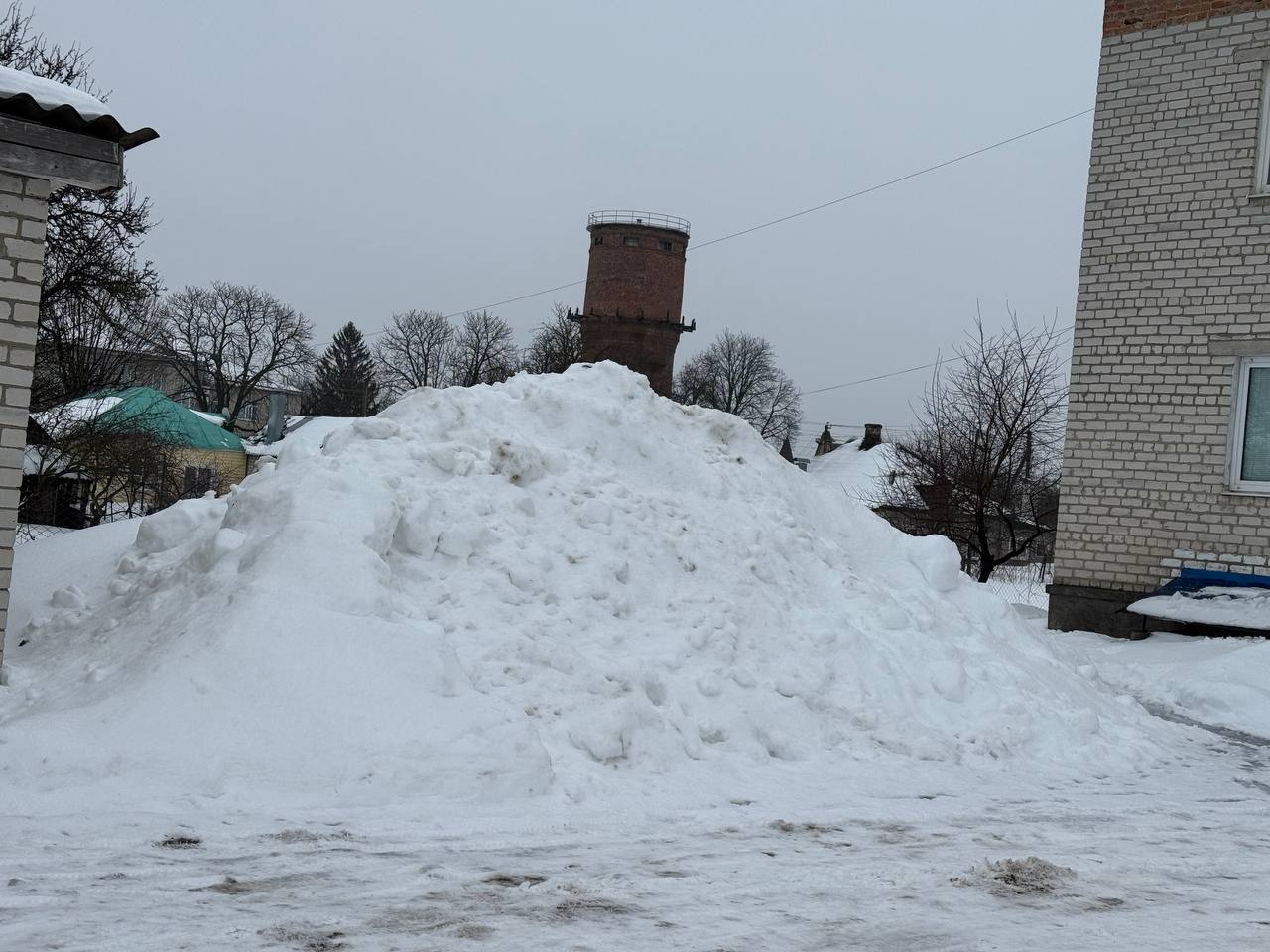 Установлено, что в феврале 2026 года после обильных снегопадов на придомовой территории образовалось значительное скопление снега, препятствующее свободному передвижению пешеходов и повлекшие повреждение газона с растительными насаждениями.
