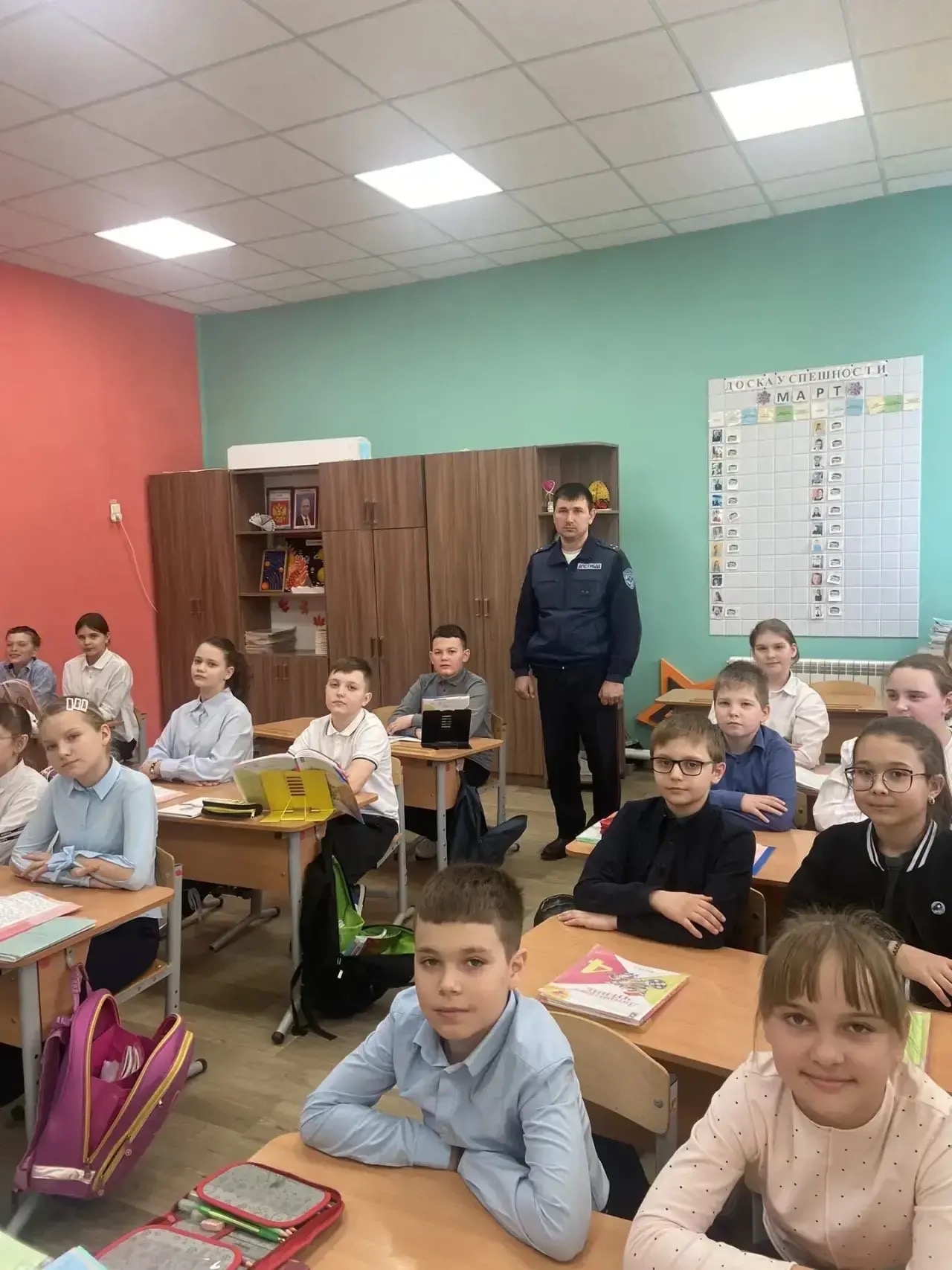 В ходе беседы автоинспектор ответил на вопросы школьников, касающиеся правил дорожного движения и ответственности за их нарушение. Также были продемонстрированы тематические видеоролики.