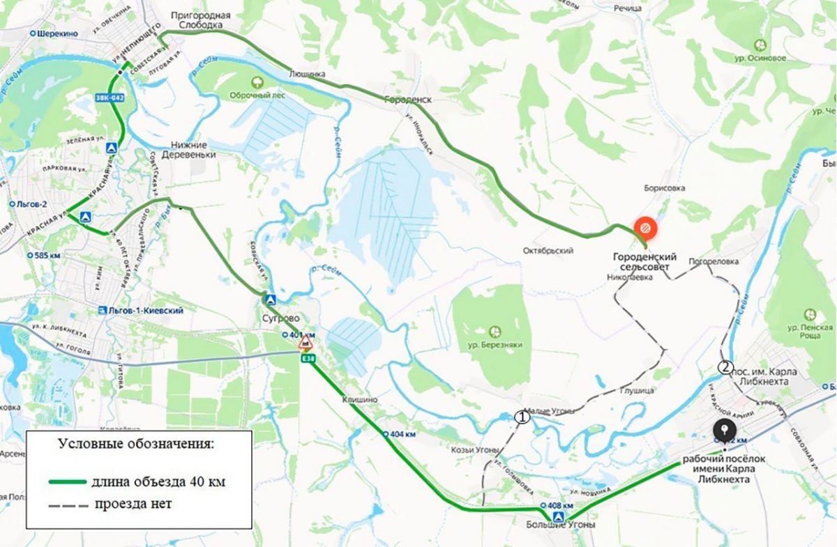 На период паводка объезд данного участка организован через город Льгов, рассказали в региональном Правительстве.