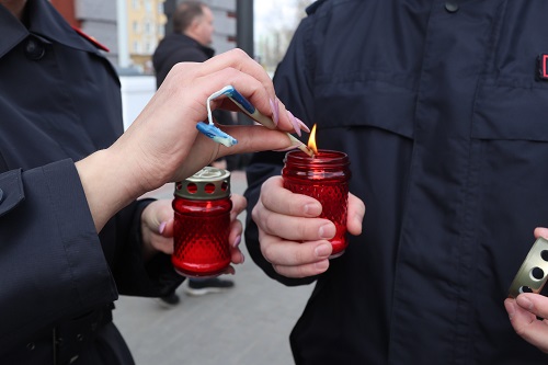 Сотрудники органов внутренних дел Курска доставили частичку огня в часовню Святого великомученика Георгия Победоносца и зажгли лампадки и свечи, как символ единения мира.