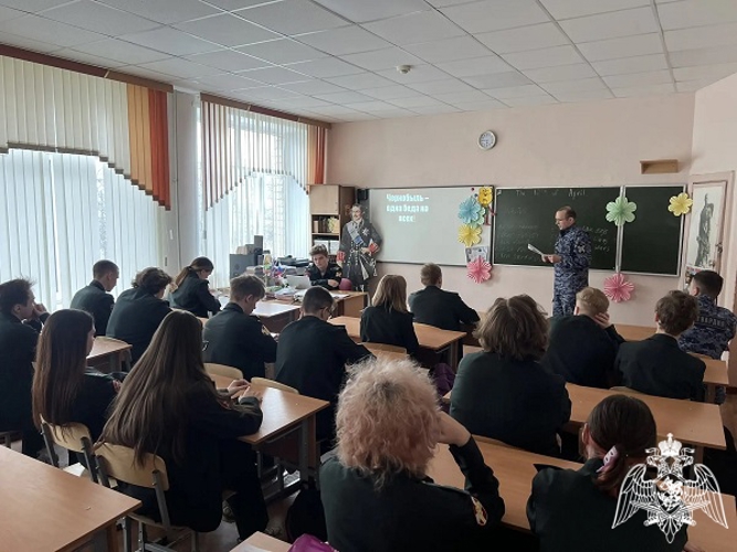 В ходе встреч сотрудники и военнослужащие ведомства рассказали школьникам о подвиге ликвидаторов аварии — пожарных, военных, инженеров, медиков и других специалистов , которые ценой здоровья и жизни остановили распространение радиации.