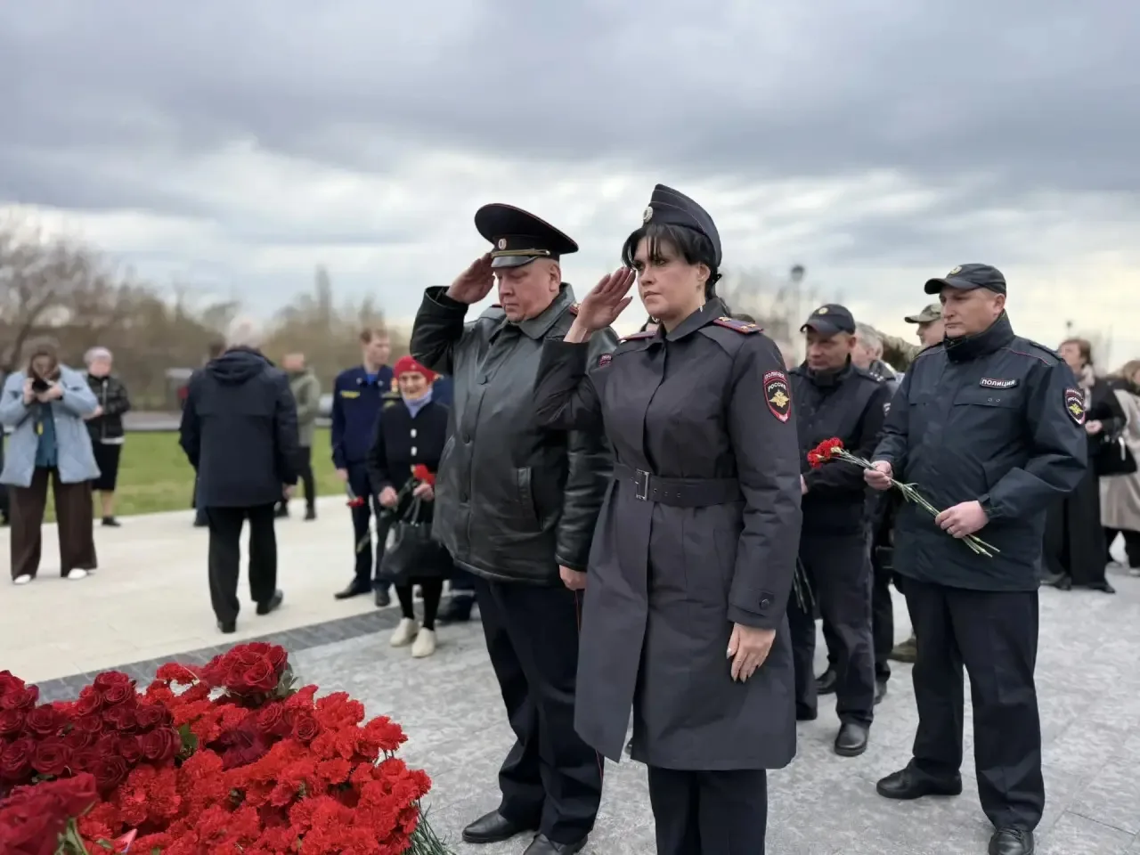 Сотрудники Курской полиции почтили память всех, кто отдал свою жизнь за Родину, и возложили цветы в парке «Патриот» у закладного камня на месте будущего памятника.