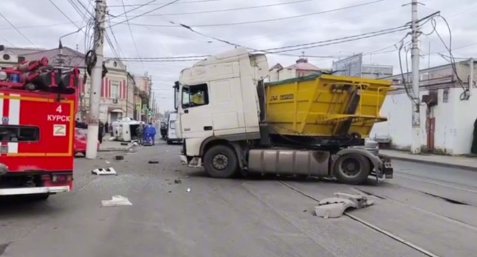 Рано утром 5 сентября на перекрёстке улиц Красной Армии и Добролюбова в центре Курска столкнулись грузовик DAF и автомобиль скорой помощи.