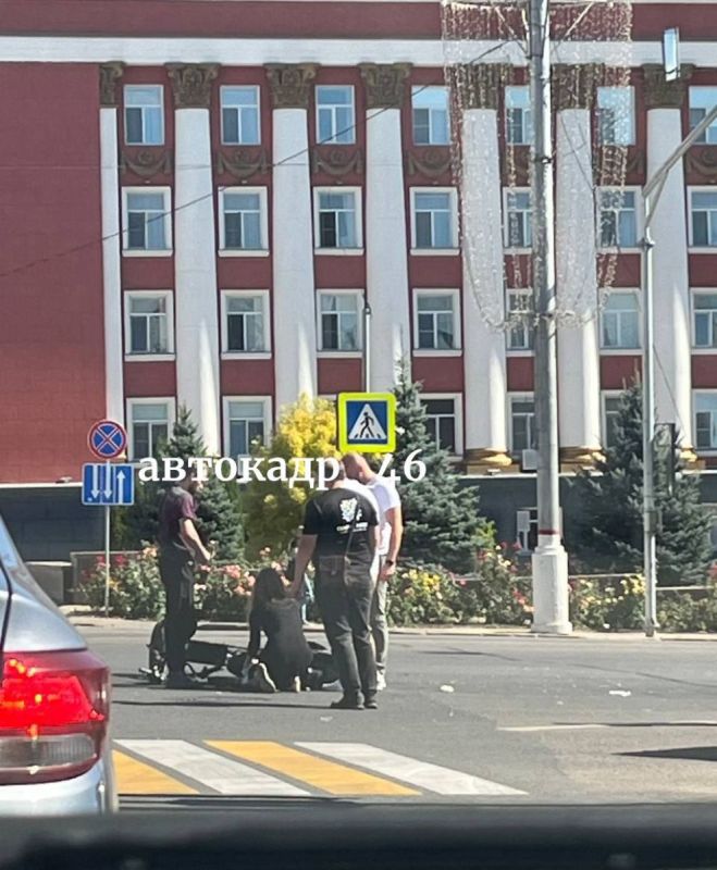 Днём на улице Ленина в Курске произошло ДТП, в котором автомобиль «Вольво» под управлением 34-летнего водителя столкнулся с электросамокатом.
