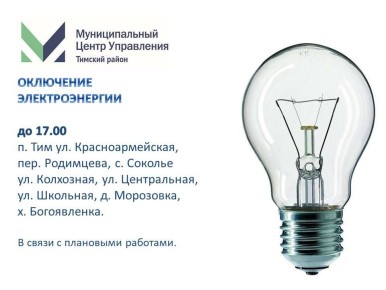 Уважаемые жители Щигровского района, сообщаем о временном отключении света в следующих населённых пунктах:п. Никольский;д. 1-я Семеновка;до 16:00Отключение связано с плановыми работами на электросетях.Приносим извинения...