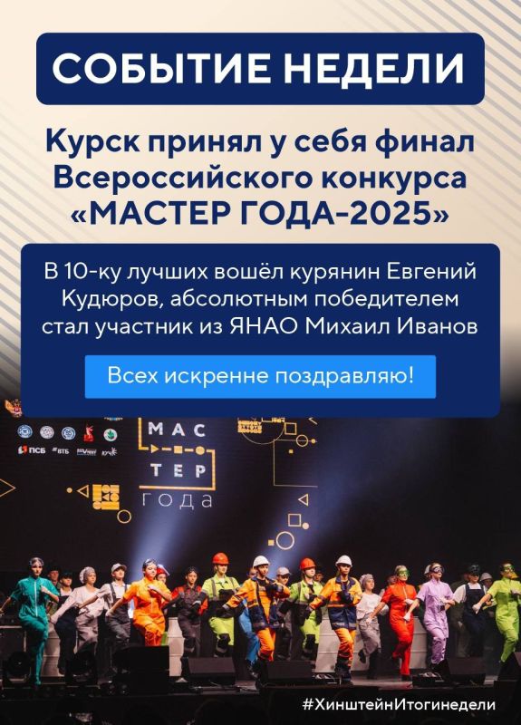 В воскресенье по традиции подводим итоги уходящей недели.Главное за эти 7 днейКурск принял финал Всероссийского конкурса «Мастер года-2025». Поздравляю всех, кому повезло стать частью этого проекта!Провёл рабочие встречи с министром просвещения России...