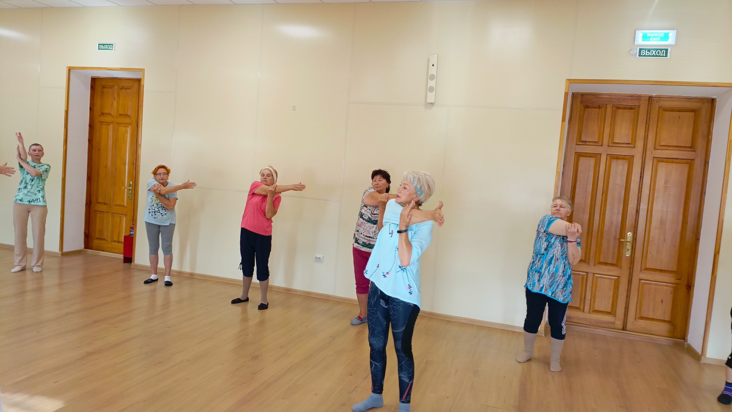 На базе ОБУСО "ЦСО "Участие " города Курска" продолжаются занятия оздоровительной гимнастикой для старшего поколения курян в рамках проекта "Курское долголетие".