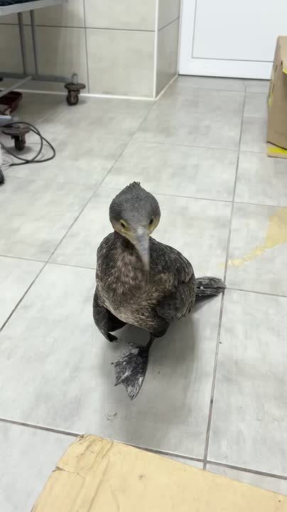 Историю травмированной птицы рассказала ветеринар Виктория Быканова. Пернатый пациент поступил к ней из курчатовского Парка птиц - туда баклана со сломанным крылом люди принесли и просто оставили (так делать нельзя, уточняет доктор).