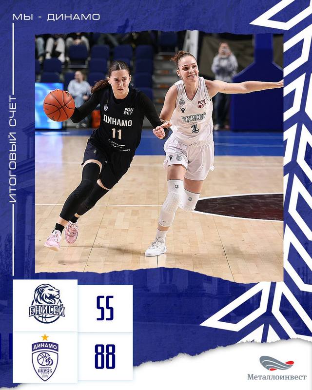В воскресенье, 13 октября, баскетболистки курского «Динамо» в Красноярске одержали крупную победу над «Енисеем» со счетом 88:55 (21:12, 22:11, 21:15, 24:17), ставшую для них третьей подряд.