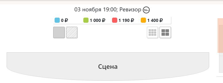 Билеты на "Ревизора" ВСЁ! \_()_/. Ценник, кстати, был приемлемый - от 1000 до 1400.
