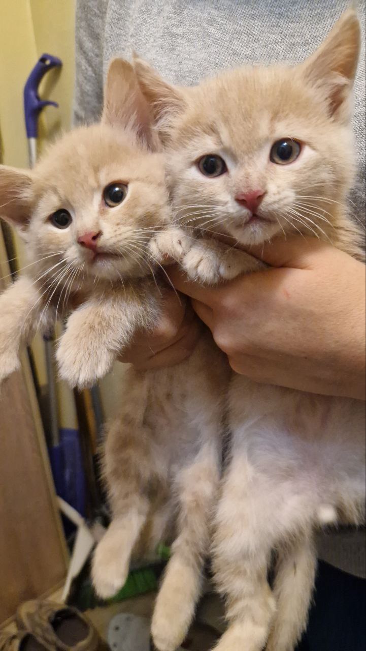 Дети прибыли в Москву.. Два котика 3,5 месяцев из Курского приграничья с точки эвакуации. Персиковые! Толстые, активные. В клетке сидеть не хотят, хотят на ручки. Лоток сразу нашли Ребята, срочно им семьи надо. Столько было...