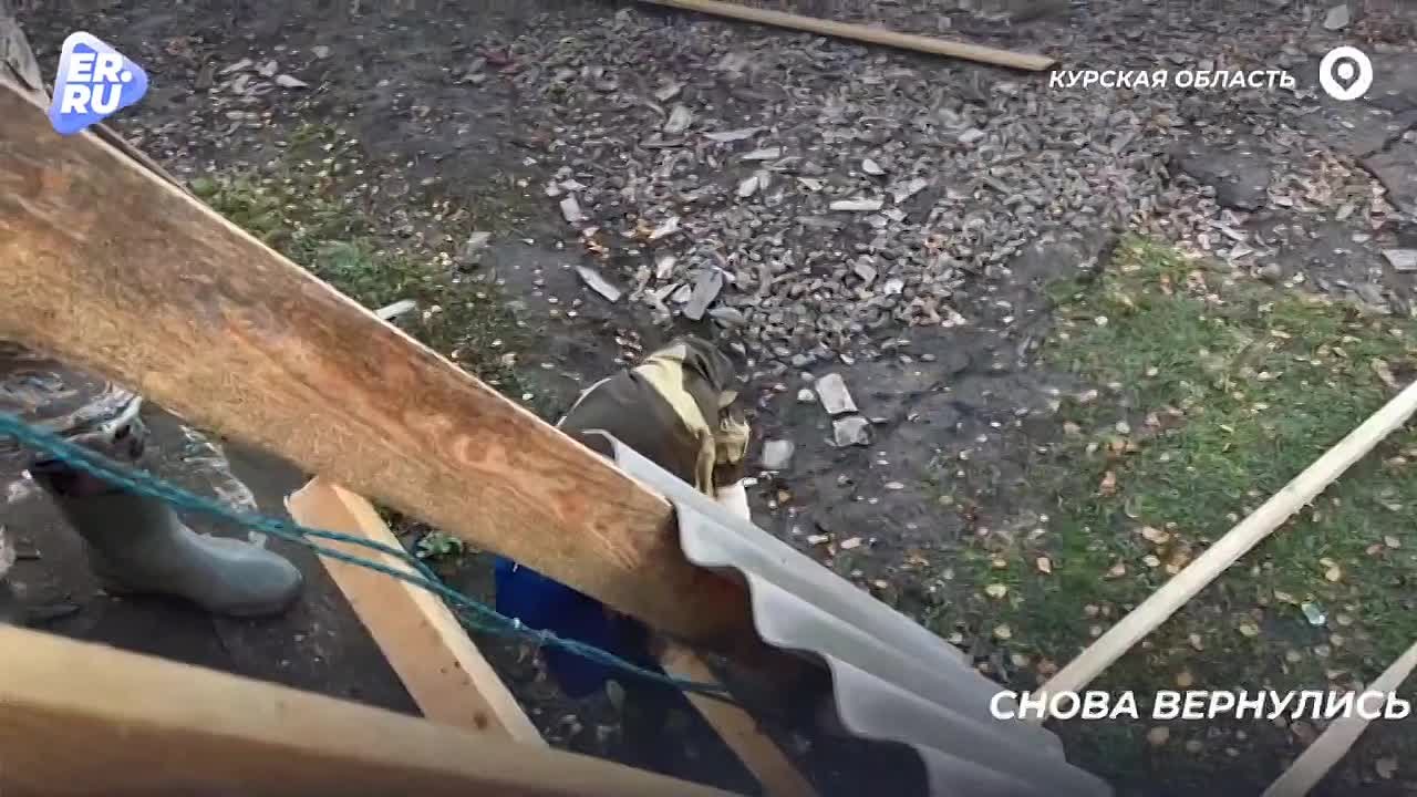 Восьмая смена волонтёров «Курского рубежа» приступила к работам. Активисты из 15 регионов России каждый день выезжают в приграничные сёла, чтобы помочь людям восстановить дома после обстрелов.