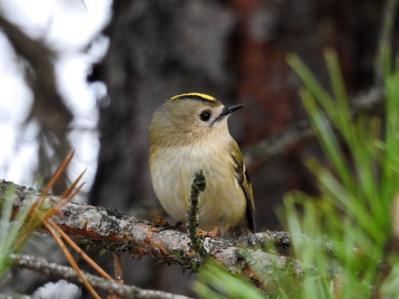 Доброе утро! Малютка желтоголовый королёк в сумрачном ноябрьском лесу. Это самая маленькая птица России, весом в 5-7 граммов. Что не мешает ей в курских краях зимовать, а гнездиться еще севернее. Фото: Lex Дейнеко. #ПриродаСоловьиногоКрая
