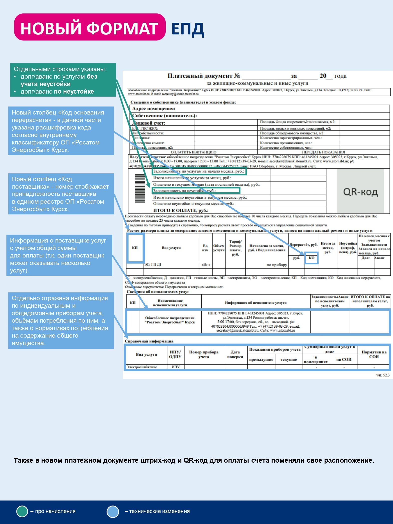 Также в новом платежном документе штрих-код и QR-код для оплаты счета поменяли свое расположение.