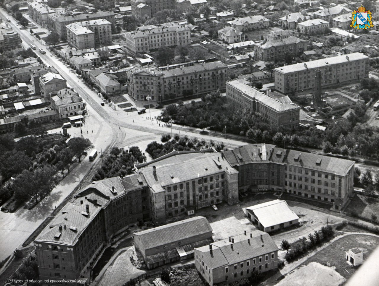 Минутка истории. Курск, площадь Перекальского в 1960 году. Фото с самолета из архивов Курского областного краеведческого музея. Интересно, а много среди нас выпускников КГМУ? #история #музей46 #Курск