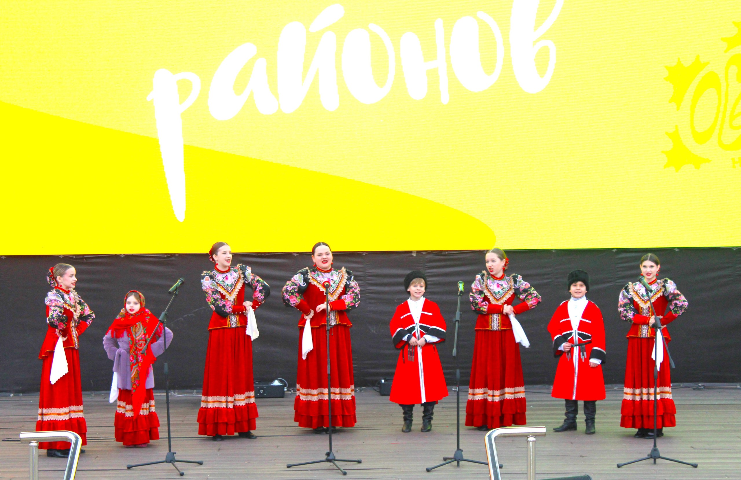 Представление нашего района начал детский образцовый ансамбль «Златоцвет». Великолепно исполненные ими русские народные песни и плюс актерское мастерство вызвали неподдельный восторг публики.