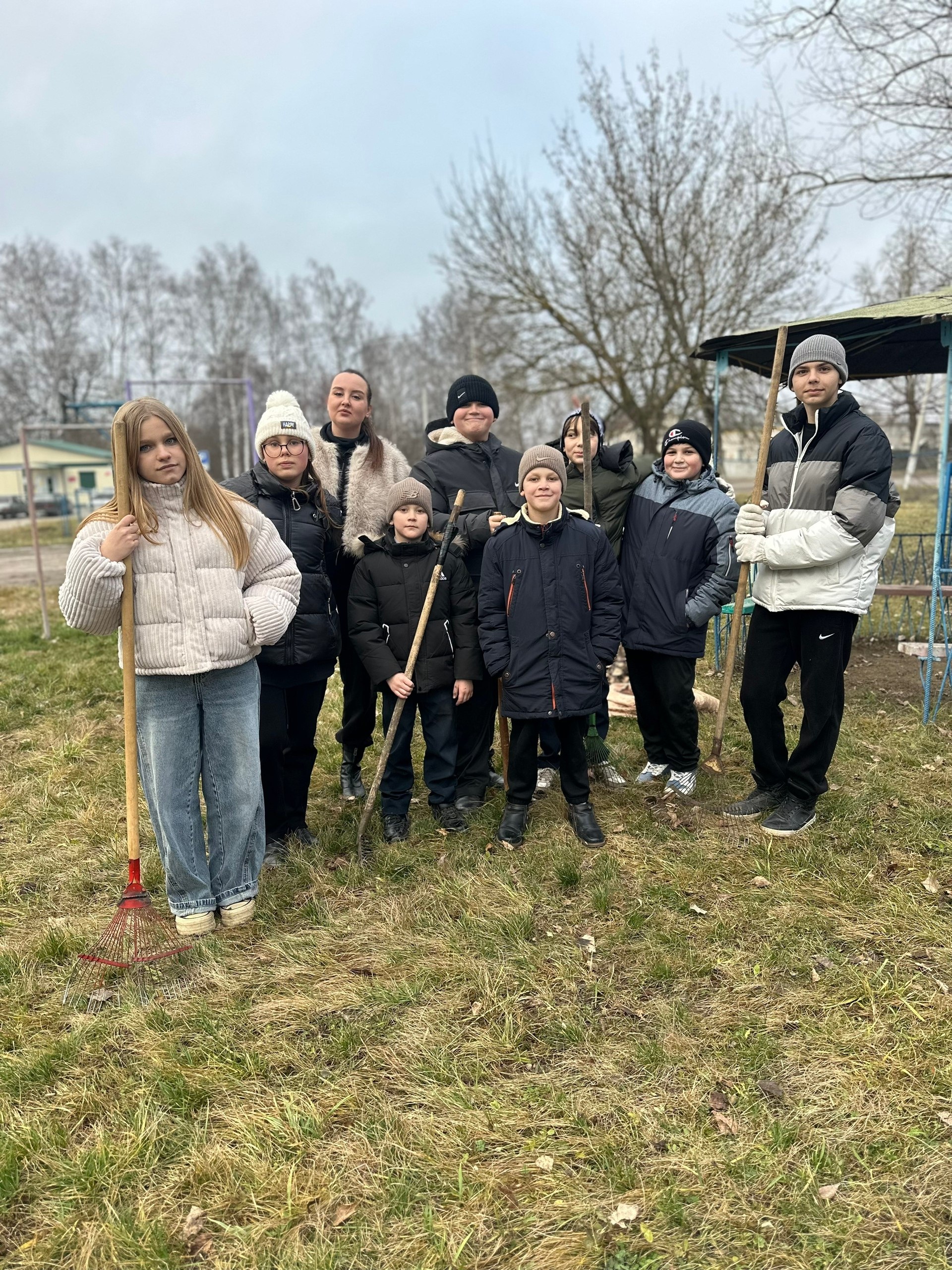 Ребята с энтузиазмом взялись за дело: вооружившись граблями и мешками, они методично очищали газоны, дорожки и зоны отдыха от накопившейся листвы. Работа шла дружно и организованно — каждый внёс свой вклад в общее дело.