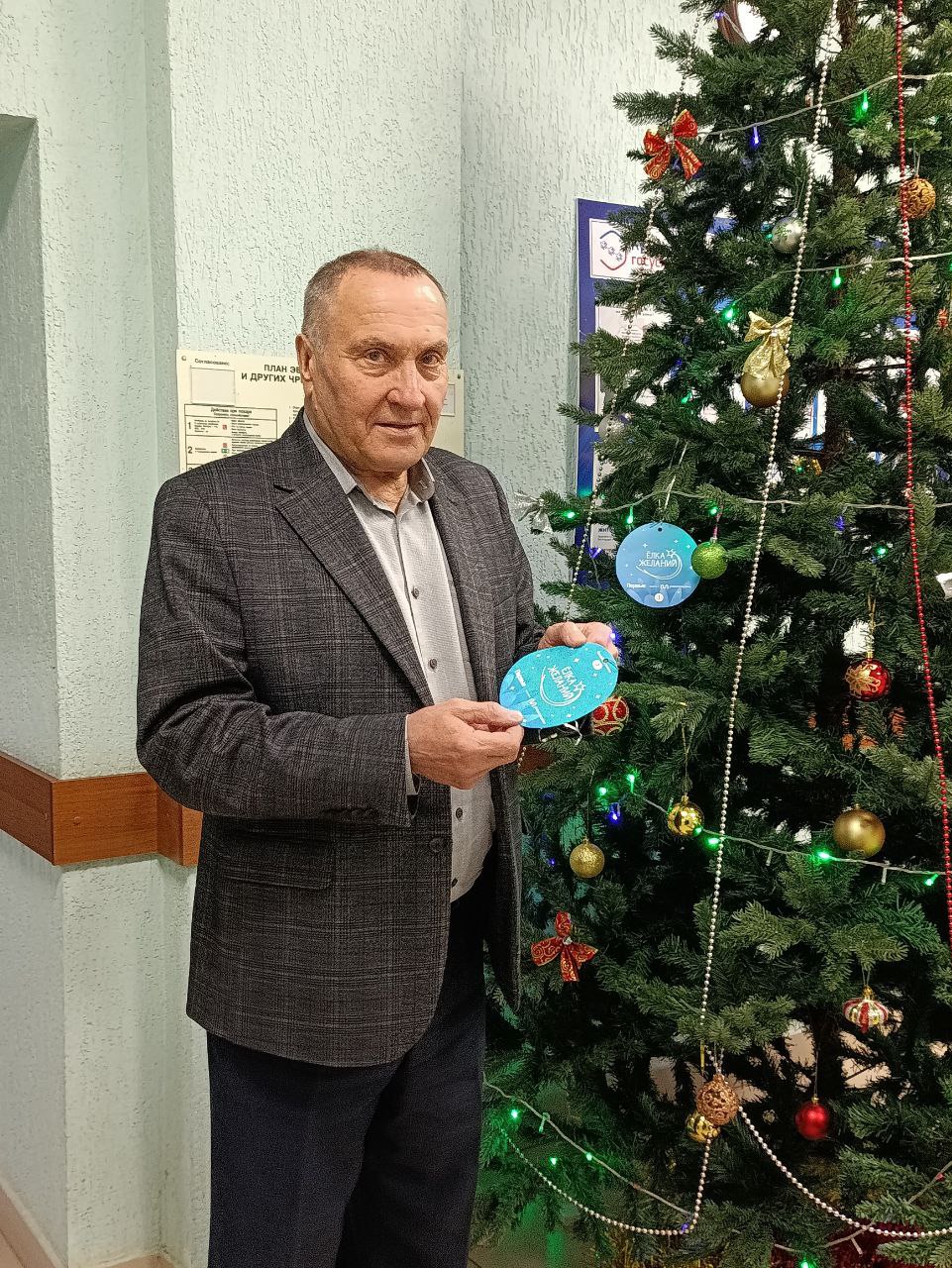 Принял участие в акции «Ёлка желаний». Снял с ёлки шар с желаниями Андрея и Вероники, которые попросили подарок-сюрприз.
