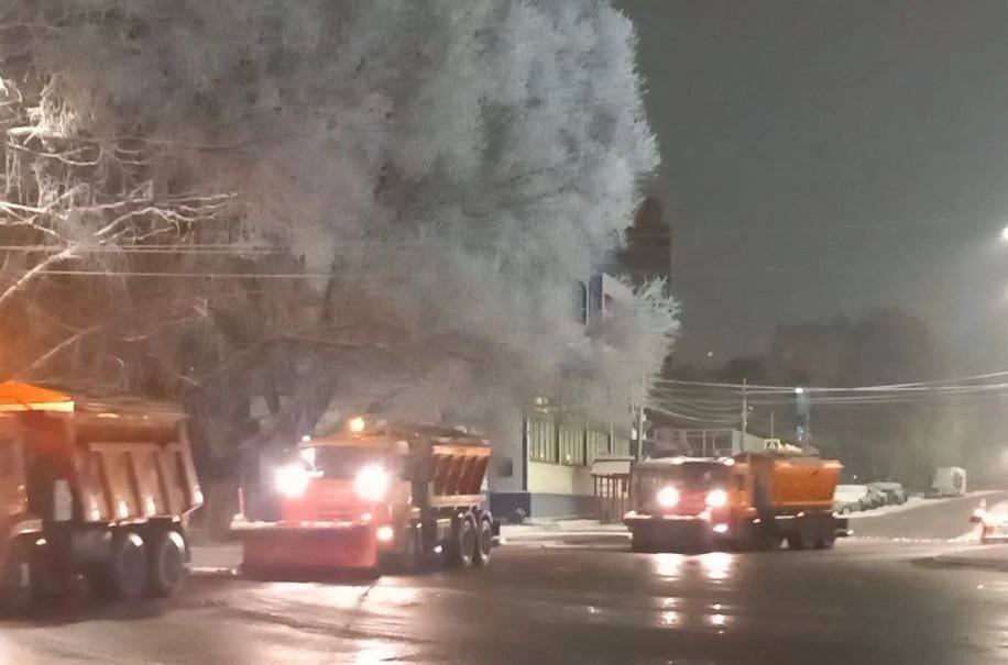 В областном центре всю ночь шел снег. Чтобы максимально расчистить дороги, проезды, тротуары, городские службы работают круглосуточно.