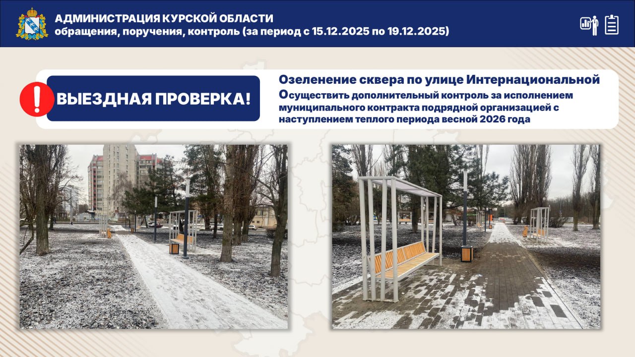 Также Александр Крылов попросил поручить главе Курска Евгению Маслову дополнительно проконтролировать исполнение подрядчиком обязательств по озеленению в рамках муниципального контракта в весенний период. Контрольно-аналитический департамент, как отмечается, продолжит держать ситуацию на контроле.