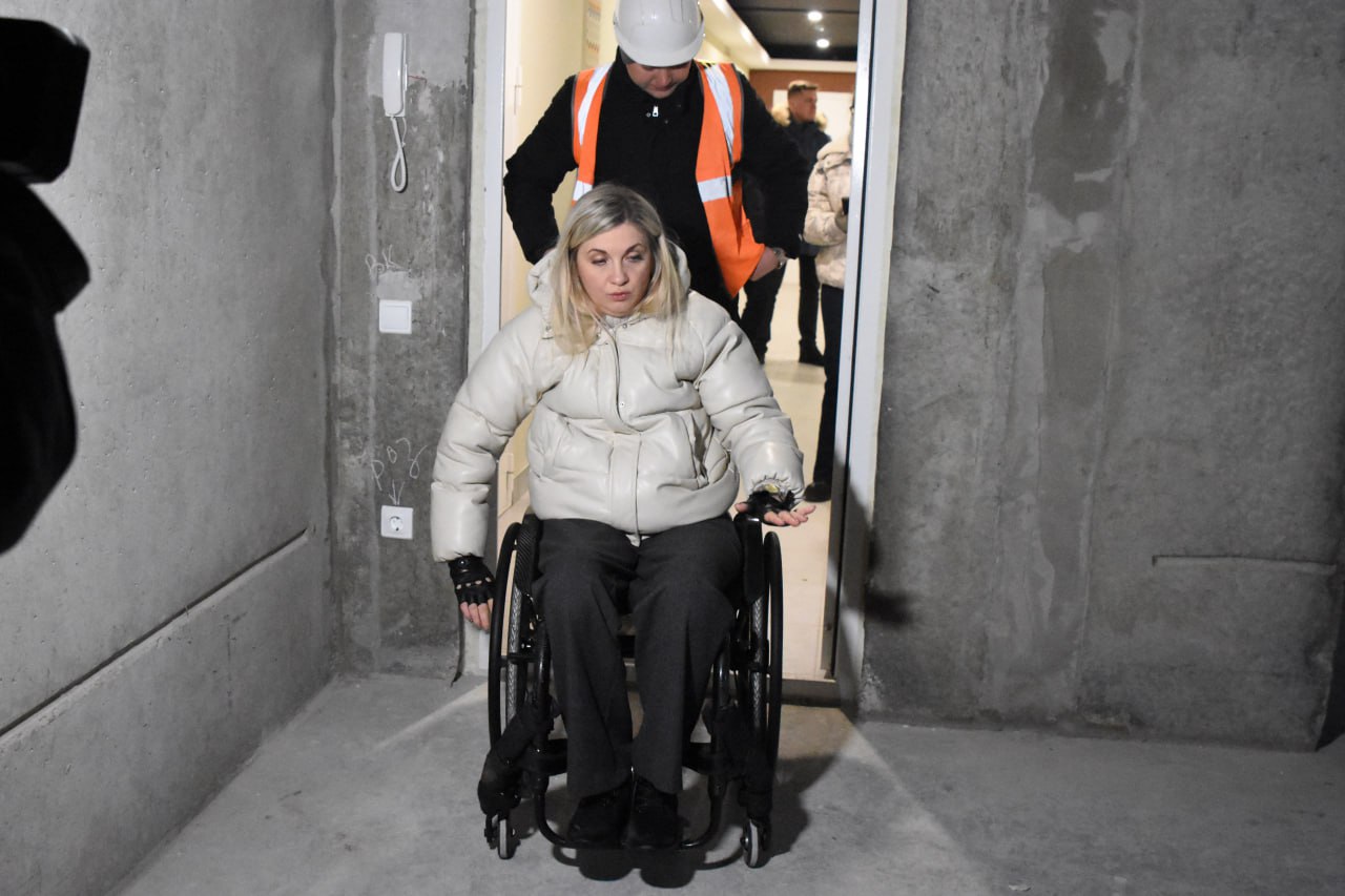- И если мы говорим про черновую отделку, то коляска проходит. Но когда здесь появится дверной пакет, проём сузится. К сожалению, уже более большие коляски здесь не пройдут. Поэтому мы проговорили с застройщиками о том, чтобы уже в стандартной планировке немного увеличить дверь санузлов до 80 см. Тогда это решит очень большую проблему, и квартира будет абсолютно доступна для любых категорий, - пояснила Анна Гладилина.