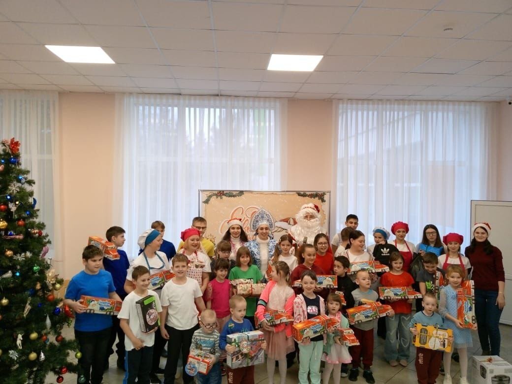 В гости к воспитанникам приехали представители молодёжного движения Курского филиала компании «Биаксплен». Они привезли с собой не просто подарки, а целый новогодний праздник. С порога детей встретили Дедушка Мороз и Снегурочка, а потом началось самое интересное — творческая мастерская.