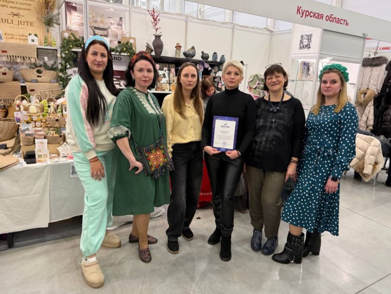 По итогам участия курских предпринимателей в выставке-ярмарке народных художественных промыслов России «ЛАДЬЯ. Зимняя сказка-2025» Центр «Мой бизнес» отмечен дипломом за поддержку мастеров и художников и организацию коллективного стенда.