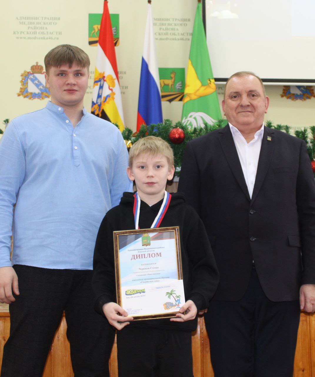 Вместе с Анатолием Радченко, тренером Центра творчества и спорта Медвенского района, обладателем высоких наград всероссийского и регионального уровней, поздравили наших юных звездочек и их наставников и вручили билеты в аквапарк! Ну, а Дедушка Мороз подарил ребятам сладкие подарки!